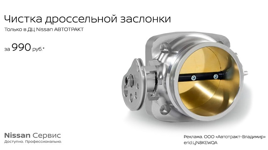 Команда ДЦ NISSAN предлагает пройти услугу по чистке дроссельной заслонки всего за 990 руб.!*